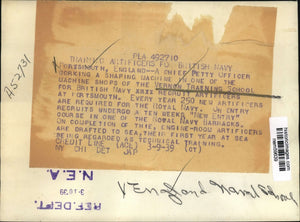 A chief Petty Officer working a shaping machine in one of the machine shops of the Vernon Training School for British Navy Recruit Artificers at Portsmouth. Every yea 250 new artifiers are required for the Royal Navy. On entry recruits undergo a ten weeks "New Entry" course in one of the Royal Navy Barracks are drafted to sea, their first year at sea being regarded as technical training.
