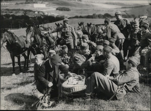 1938 Press Photo Czechoslovak Soldiers bus snacks in the countryside near Prague