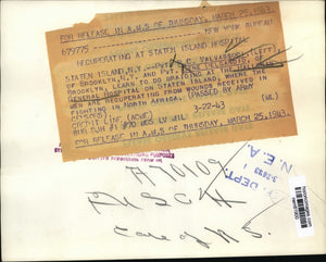 Private R.C. Valvassoci (left) of Brooklyn New York and Private Gener Delgandio of Brooklyn, learn to do braiding at the Halloran General Hospital on Staten Island where the men are recuperating from wounds received in fighting in North Africa.