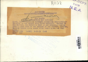Egyptian Recruits undergoing Anti-Aircraft Training in Desert near Cairo. Trained by the British the Egyptian Army is taking over a large part of the Defense of the Country, however British Troops still guard vital zones along the Suez Canal.
