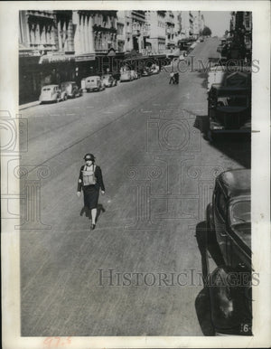 Daylight Air Raid Drill in Melbourne Melbourne, Australia - Through almost-deserted Bourke Street a woman Air Raid Precautions Warden walks her belt during a recent daylight air raid practice.