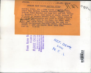 Maxwell Field Ala. British Foreign Minister Anthony Eden British Field Marshal Sir John Dill and Gen. George C. Marshall U.S Army Chief of Staff dropped in by Plane to inspect Maxwell Field. Shown watching a flying demonstration are Capt. Reginald Winn, Aid to Sir John, Sir John; Eden; Maj. Gen. Ralph Royce, commanding the Army Air Forces Southern Training Center and Marshall