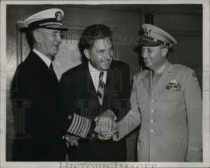 1946 Press Photo Admiral King smiles with Governor Lausche and Governor Robert