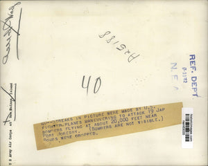 Streaks in picture were made by US Fighter planes maneuvering to attack 19 Japanese Bombers flying at about 20,000 feet near Port Morsby. Bombs were dropped.