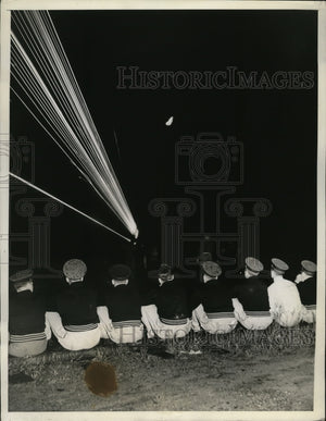 West Point First Class men, on a two day inspection tour of the Aberdeen Proving Ground, watch a night demonstration of firing of tracer bullets.