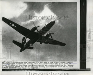 1956 Press Photo Martin Bomber Plane attacked by an unidentified bombers