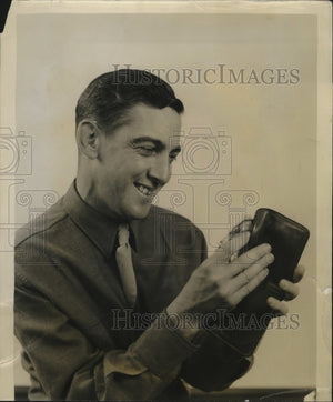 1942 Press Photo Sgt. Joe Koppes stuffs his wallets after leaving his Squadron