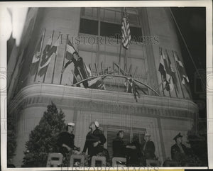1945 Press Photo Sailors remove United Nation Flag from San Francisco California