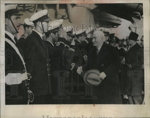 1947 Press Photo Greek Premier Sophoulis shakes hands with crew of the PINDOS