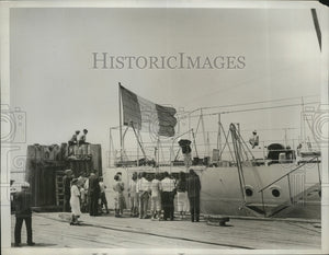 1934 Press Photo Crowds examine French Battleship D' Entrecasteaux at Newport