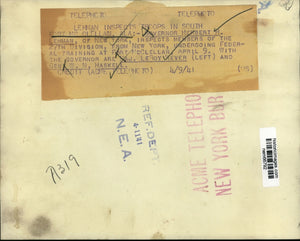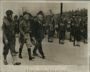 Fort McClellan, Ala Governor Herbert H Lehman of NY, inspects members of the 27th Division from NY, undergoing federal training at Fort Mczclellan April 9. With the Governor are Maj LeRoy Wever at left and Gen WN Haskell.