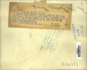 British Plane Gets Baptism of Fire With both wings severely damaged a British war plane is shown in this official photo after it managed to get home after a reconnaissance flight over Northwestern Germany. Most of the fabric may be seen missing from wing, exposing framework.