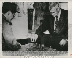 Major General William Dean is show playing a game of Korean chess with with a Korean guard. The famous former commander of the US 24th Division and Congressional Medal of Honor winner was captured by the Reds August 25, 1950 and is being held in a North Korean prison camp