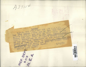 The 18th annual Field day of the NY University's ROTC was held on Ohio Field in the Bronx, May 15. Col Robert Mazet at left presenting an officer's sabre, donated by the NY Commandery of the Military Order of Foreign Wars to cadet Lt Col Michael P DiGacomo for being the most efficient cadet officer of the senior class.