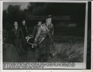1955 Press Photo Rescuers carry a victim's body out of the crashed Italian plane