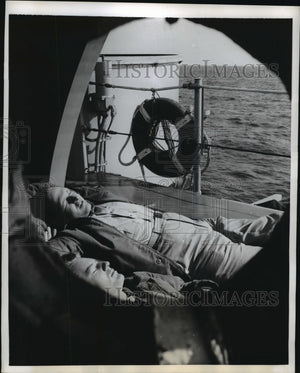 1956 Press Photo Naval Reserve Officers snoozing in the sun escorts USS Kyne