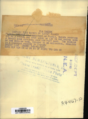 1940 Press Photo Pajaja Sweden bombed by Soviet Plane