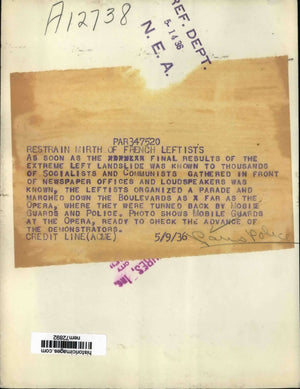 As soon as the final results of the extreme left landslide was known to thousands of Socialists and Communists gathered in front of news offices and loud speakers was known, the Leftists organized a parade and marched down the boulevards as far as the Opera, where they were turned back by mobile guards and police.Mobile guards at the Opera ready to check the advance of the dmonstration.