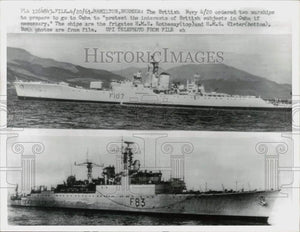 Hamilton, Bermuda: The British Navy 4/20 ordered 2 warships to prepare to go to Cuba to "protect the interests of British subjects in Cuba if necessary." The ships are the frigates HMS Rothesay (top) and HMS Ulster (bottom). Cuba -- anti-Castro movement -- invasion.