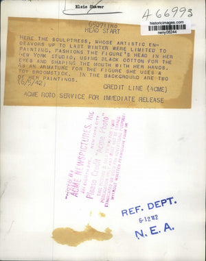 1942 Press Photo New York Sculptress Elise Shaver used broomstick NYC