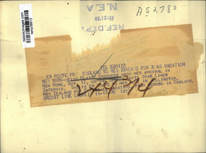 Miss Claire Crothers upon her arrival in NY, Nov 17 on the Cunard White Star liner Saturnia. She is en route to her home in Wellington, New Zealand for Christmas vacation from school in England.