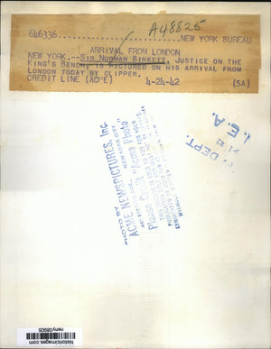 1942 Press Photo New York Sir Norman Birkett Justice on King's Bench NYC