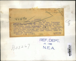 1935 Press Photo New York Theodore Price Jr & bride Nancy Heckscher in NYC