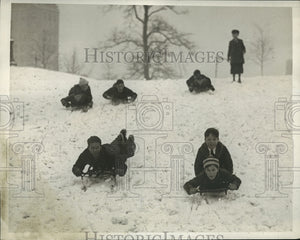 1935 Press Photo New York kids sledding in snow in Central Park in NYC