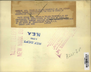 MRS FRANKLIN DELANO ROOSEVELT JR THE FORMER ETHEL DUPONT CONTRIBUTES TO THE MILE OF TIMES AT ROCKEFELLER PLAZA NYC. PHOTO SHOWS MRS FRANKLIN DELANO ROOSEVELT AS SHE CONTRIBUTED 25 CENTS IN THE MILES OF DIMES IN THE NATIONAL DEFENSE CAMPAIGN AGAINST INFANTILE PARALYSIS AT THE BOOTH AT ROCKEFELLER PLAZA NYC.