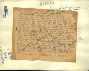 Group of Chilean Journalists have been working on the staffs of American newspapers during the past few months, begin a tour of the U.S. LTR: Edward C. Johnson; Luis Silva; Manuel Vega; Joaquin Moirhead; Francisco Le Danteci; Rafael Valdivieso & Guillermo Valenzuela.