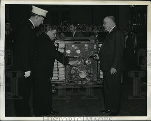 Among numerous devices on display at the First Civilian & National Defense Expo which will run for a month in NY, was the new trailer pump which has the attention of LTR: John McCarthy, Mayor LaGuardia & Patrick J Walsh.
