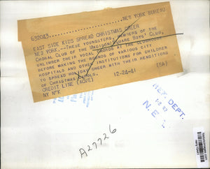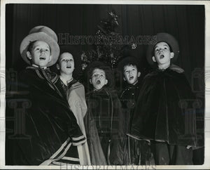 These youngsters members if the Choral Club of the Madison Square Boys Club unlimber their vocal chords at the clubhouse before making the rounds of various city hospitals and other institutions for children to spread Holiday cheer with their renditions of Christmas carols