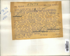 1941 Press Photo New York Mayor LaGuardia Hints He is Leaving City Hall NYC