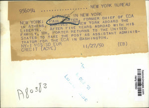 Paul Porter, former Chief of ECA in Athens arrived in NY. After 5 years abroad with his family, Mr. Porters returns to the U.S. to take the post as Assistant Administrator for the ECA in Washington.