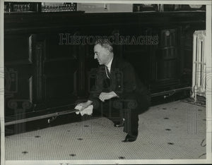 1933 Press Photo New York Bartender polish the rail of the Hotel Breoort Inn NYC