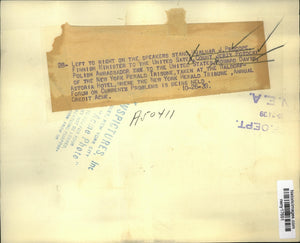 LTR ON THE SPEAKERS STAND: HJALMAR J. PROCOPE; COUNT JERZY POTOCKI AND HOWARD DAVIS AT THE WALDORF HOTEL.