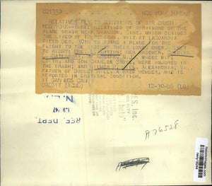 1946 Press Photo NEW YORK RELATIVES FLY TO SURVIVORS OF AIR CRASH NYC