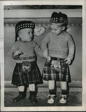 1950 Press Photo New York Ting & Andy Wall Wear Kilts in LaGuardia Field NYC