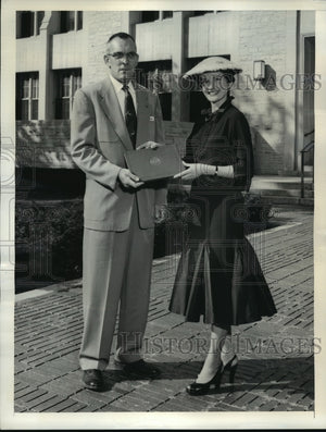 1956 Press Photo NEW YORK LAWRENCE H. ROUSE RECEIVES CERTIFICATE NYC - neny21430