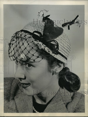 1957 Press Photo New York Woman wears Valentine cloche of natural straw NYC