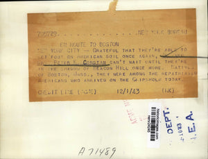 GRATEFUL THAT THEY'RE ABLE TO SET FOOT ON AMERICAN SOIL ONCE AGAIN MR AND MRS PETER K CONSTAN CAN'T WAIT UNTIL THEY'RE IN THE SHADOW OF BEACON HILL ONCE MORE. NATIVE OF BOSTON, MASS THEY WERE AMOUNT THE REPATRIATED AMERICANS WHO ARRIVED ON THE GRIPSHOLM TODAY