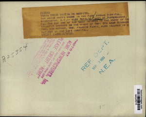The above shows in the Park Avenue Hospital Binghamton N.Y. Miss Rosalie Fahey of Susquenhanna Pa. She was one of the many inured in the wreck Atlantic Express on the night of Sept. 6th near Binghamton he mother Mrs. Francis Fahey also injured is a patient at the same hospital