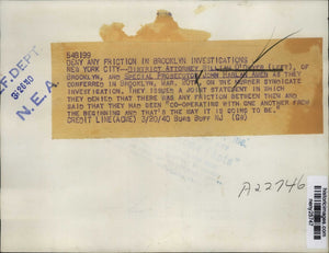 DISTRICT ATTORNEY WILLIAM O'DWYER (LEFT) OF BROOKLYN AND SPECIAL PROSECUTOR JOHN HARLAN AMEN AS THEY CONFERRED IN BROOKLYN MAR 20TH ON THE MURDER SYNDICATE INVESTIGATION. THEY ISSUED A JOINT STATEMENT IN WHICH THEY DENIED THAT THERE WAS ANY FRICTION BETWEEN THEM AND SAID THAT THEY HAD BEEN "COOPERATING WITH ONE ANOTHER FROM THE BEGINNING AND THAT'S THEY WAS IT IS GOING TO BE."