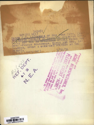 Mayor LaGuardia (L) and Mayor Charles White go out for an afternoon stroll along the world-famous boardwalk. Mayor and Mrs. LaGuardia, spent a weekend holiday at the resort.