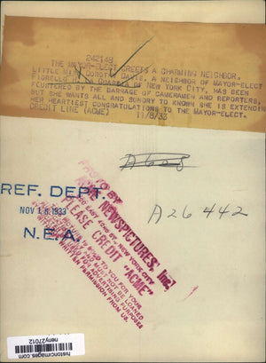 LITTLE MISS DOROTHY DAVIS A NEIGHBOR OF MAYOR ELECT FIORELLO H LAGUARDIA OF NEW YORK CITY HAS BEEN FLUSTERED BY THE BARRAGE OF CAMERAMEN AND REPORTERS BUT SHE WANTS ALL AND SUNDRY KNOWN SHE IS EXTENDING HER HEARTIEST CONGRATULATIONS TO THE MAYOR ELECT