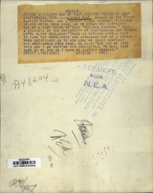 1938 Press Photo Luther Hill of First Baptist Church, Fasting in Tennessee