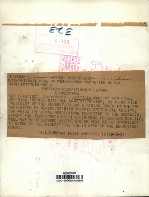 1934 Press Photo Matthew Woll of NY at American Federation of Labor convention