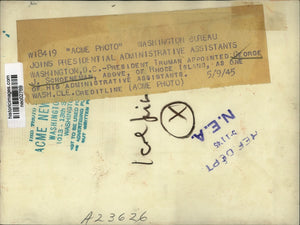 1945 Press Photo George J. Schoeneman, Truman Administration Assistant