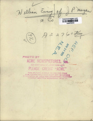 1933 Press Photo William Ewing of J.P. Morgan - neo03203