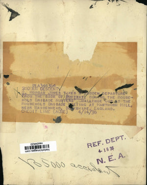 1936 Press Photo G. Morgan Jones Falling at Household Brigade Hunters' Challenge